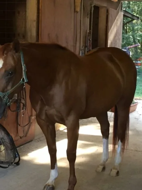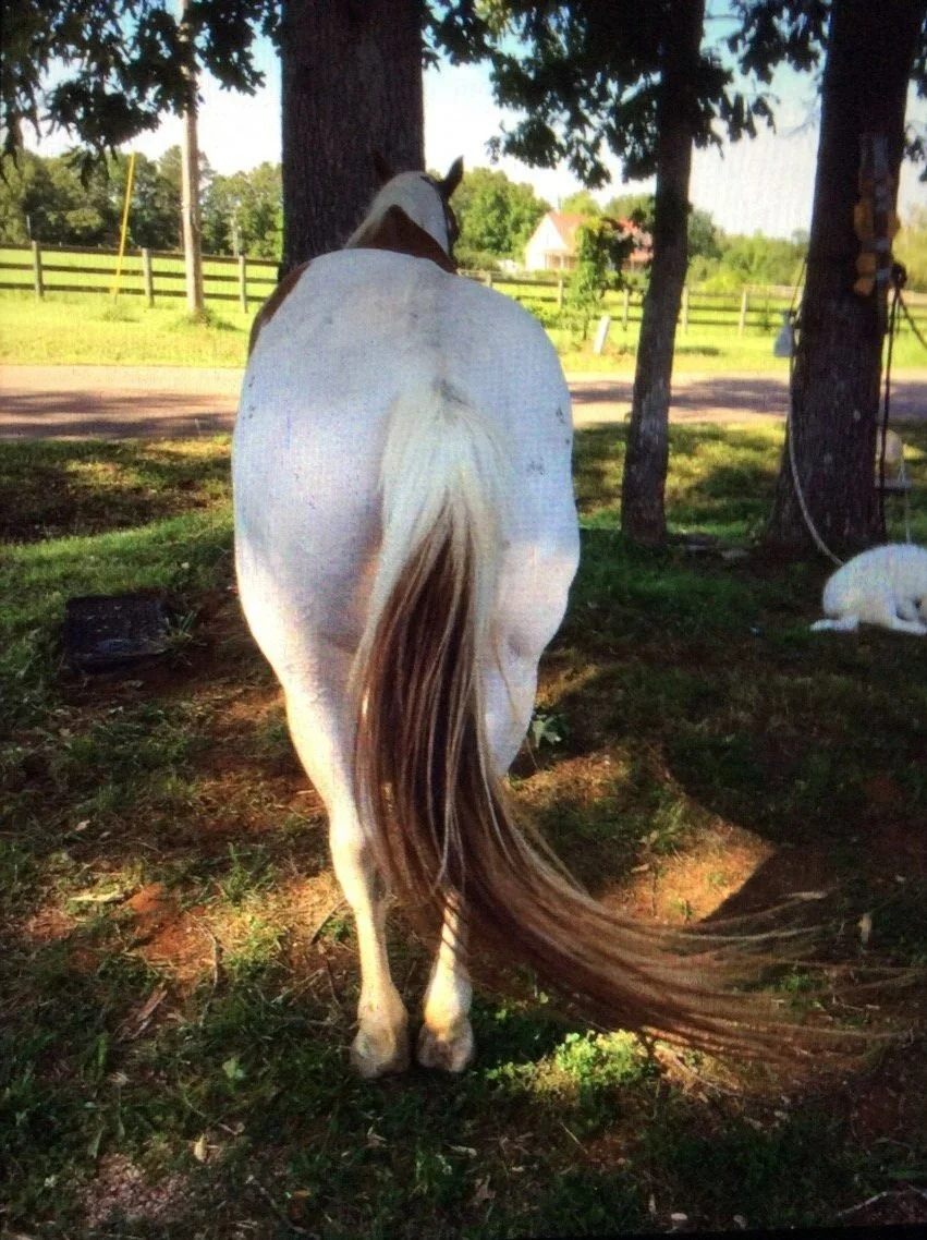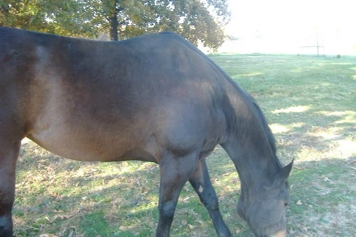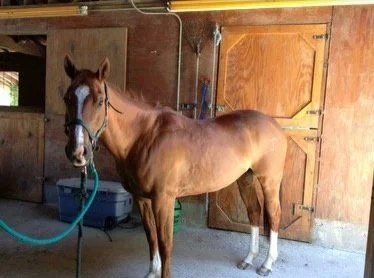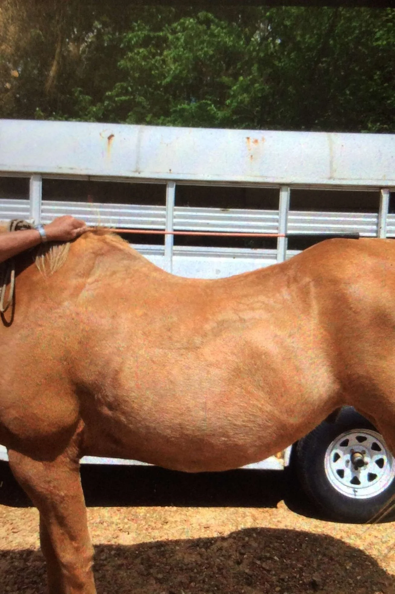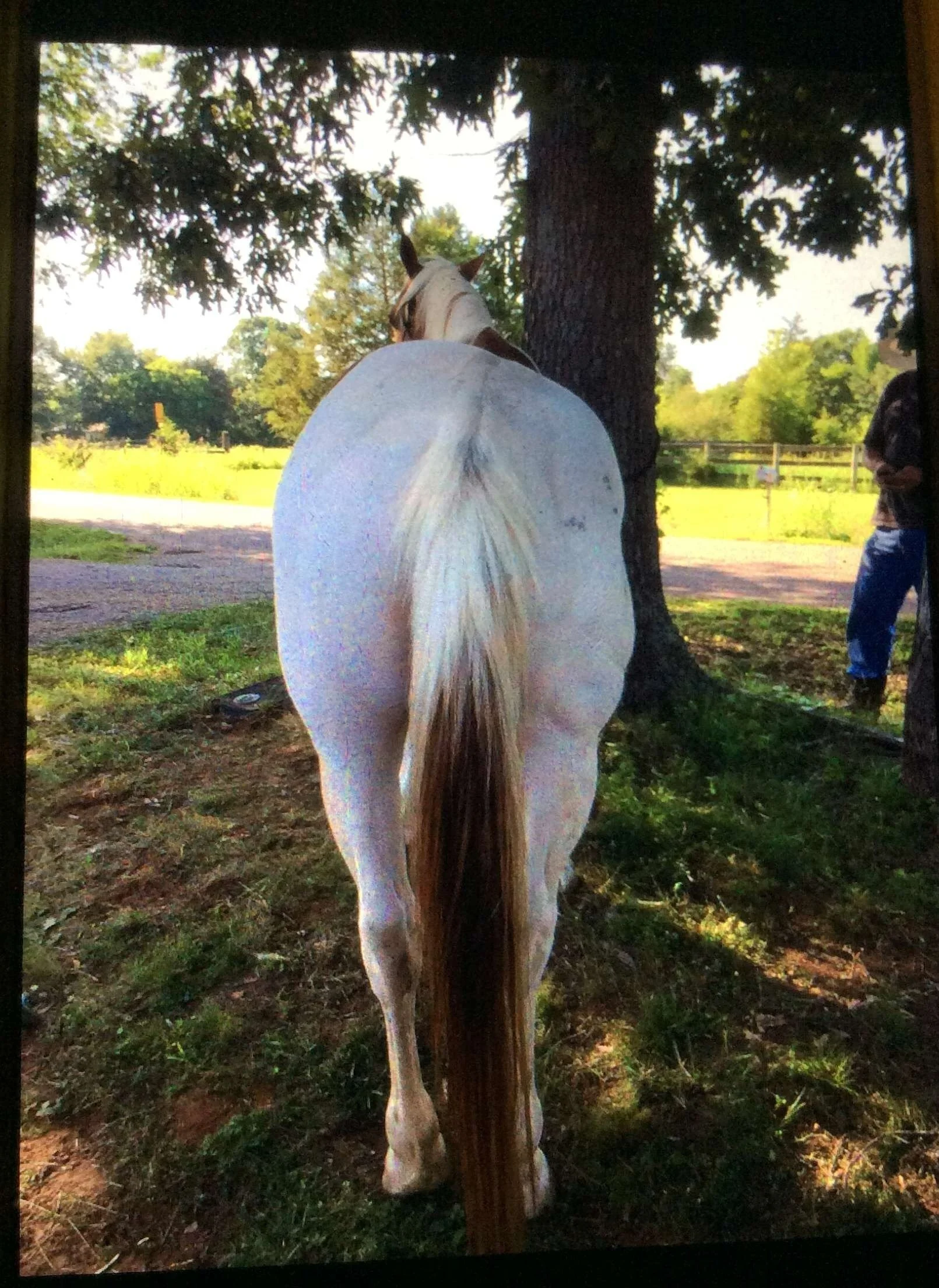 This horse also had sustained a pelvic fracture involving the Lumbosacral Plexus nerves feeding the glutals. The atrophy was pretty severe. After a little over a month, she was well on the road to recovery!