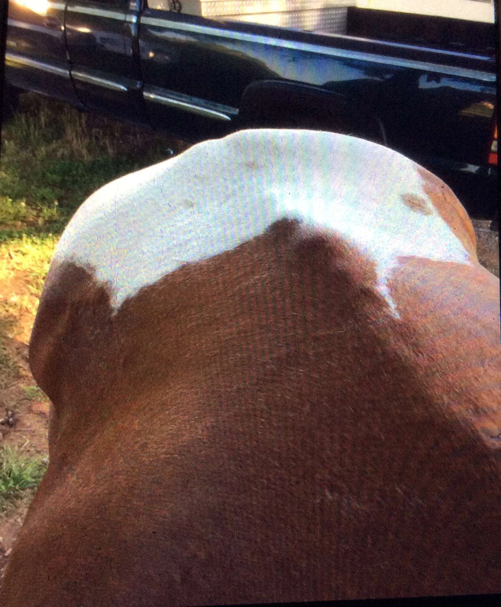 This horse had previously been a barrel horse and had been run in a “brain chain”, causing severe trauma to the poll, lower cervical and upper thoracic region. She was not able to carry herself correctly nor a rider comfortably. The picture of her saddle fit shows a constant progression in her body’s ability to overcome her previous trauma and begin to use the muscles correctly again. With consistent Bowen Therapy and diligence from her owner, she began to excel and blossom!